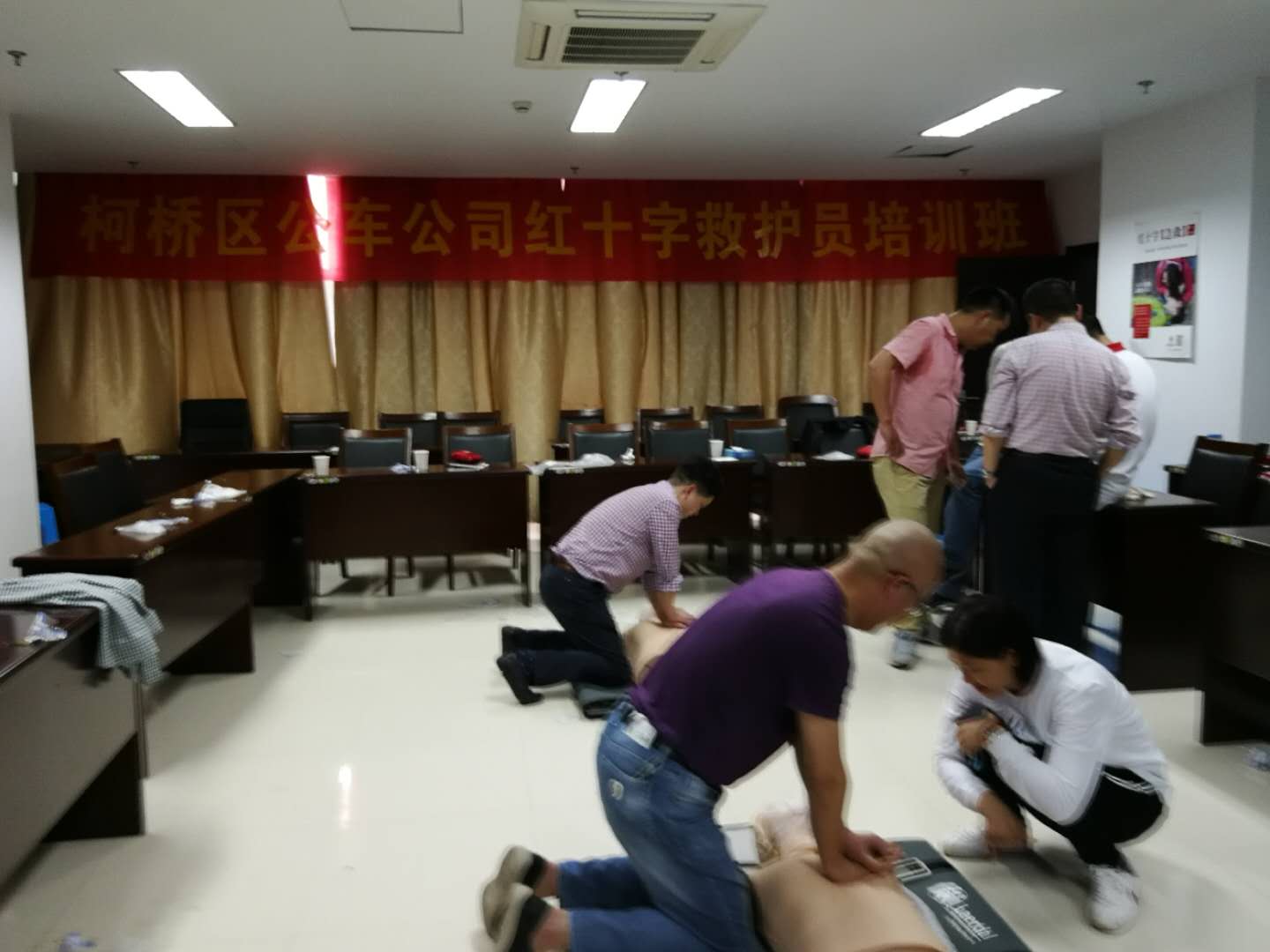 為提高公司駕駛員公務出行中面對突發(fā)事件的應急救護能力,4月20日,區(qū)公車公司駕駛員參加了區(qū)紅十字會組織的應急救護員培訓,主要學習救護知識和實踐操作。