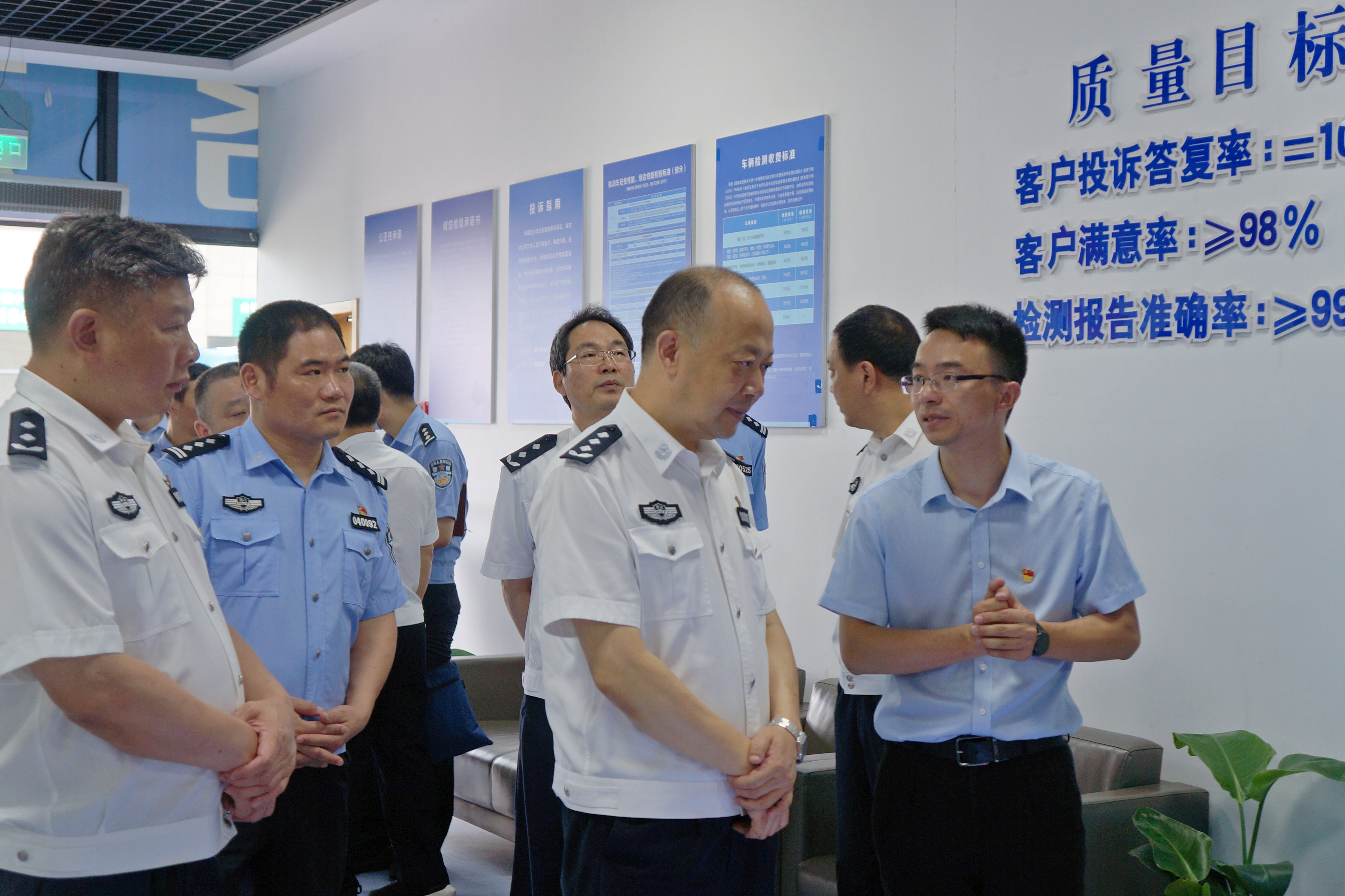 7月8日上午,省公安廳常務副廳長毛善恩一行至柯橋車輛檢測中心濱海站調研車檢“一件事”改革,市公安局局長俞流江、區(qū)公安分局局長傅紀明等陪同調研。