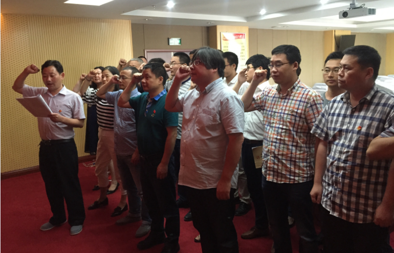 一、重溫誓詞不忘初心。全體黨員集中在黨員活動(dòng)室,面對鮮紅的黨旗,進(jìn)行莊嚴(yán)宣誓,踐行先鋒模范。